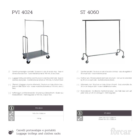 IT Carrello portavaligie e portabiti. Struttura in tubo di acciaio inox - base in IT Stender portabiti. Struttura in tubo di acciaio cromato - asta allungabile di