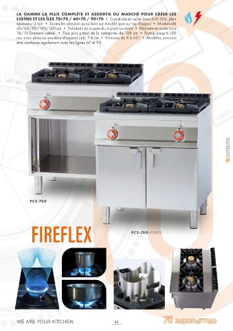 18/10 finement satiné • Four plus grand de la catégorie, de 108 cm • Frytop jusqu’à 120